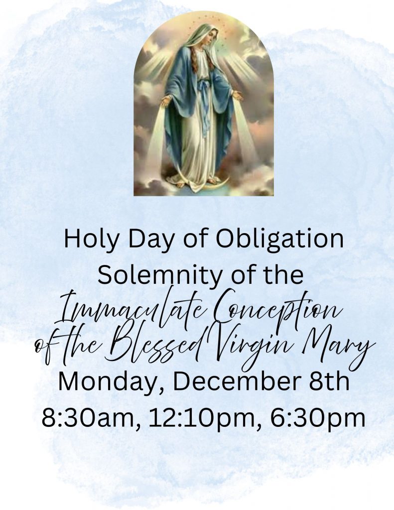 Holy Day of Obligation Solemnity of the Immaculate Conception of the Blessed Virgin Mary